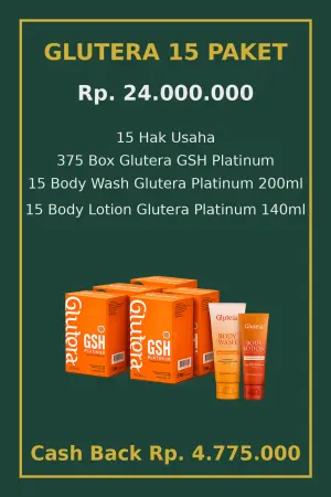 Mengambil paket 3, 7, atau 15 Glutera adalah langkah cerdas untuk mempercepat perputaran bisnis, karena stok lebih banyak, peluang closing lebih tinggi, dan keuntungan lebih maksimal. Ditambah dengan program cash back, modal menjadi lebih efisien dan potensi profit jauh lebih besar dibandingkan pembelian paket kecil.